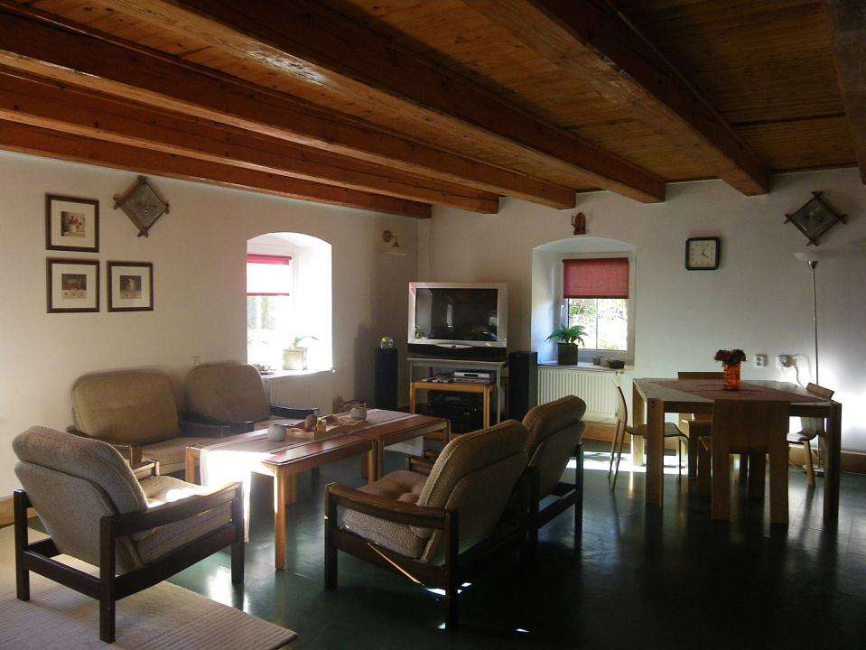 Le logement est situé dans un espace ouvert, très calme, environnement vallonné avec beaucoup de verdure et donnant sur une prairie avec des vaches. Le hameau se compose de huit maisons; dont l'un est un café. Le jardin a une superficie d'environ 1500 m2 et comprend une cheminée. Ici vous trouverez beaucoup d'endroits ombragés et ensoleillés. Il y a aussi des meubles de jardin, un barbecue et pour encore plus de confort et pour un sentiment de vraies vacances vous pouvez profiter de la nouvelle grande piscine chauffée (à partir de la fin du mois de mai jusqu'à la fin de septembre). Les dimensions de la piscine sont 8,20 x 3,50 x 1,55 (profondeur)! Le célèbre lac Lipno est à seulement 800 mètres, n'est pas génial? Après la détente dans le voisinage de la maison, l'agitation touristique commence est à 2 km avec terrasses, restaurants et boutiques. Dans la petite ville de Horni Plana, à 7 km, vous pouvez faire votre shopping. A la maison il y a amplement d'espace pour le stationnement et vous pouvez également utiliser un sauna infrarouge pour 2 personnes. Cet établissement est adapté pour des groupes jusqu'à 13 personnes + un bébé.Exposition