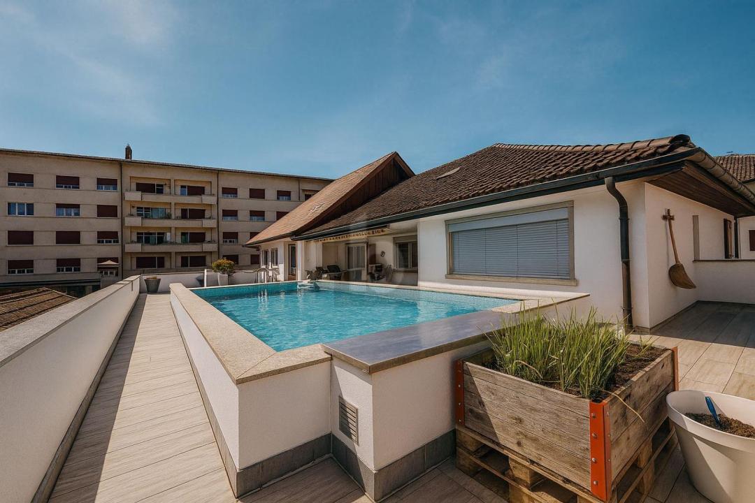 - piscine creusée sur terrasse au premier étage