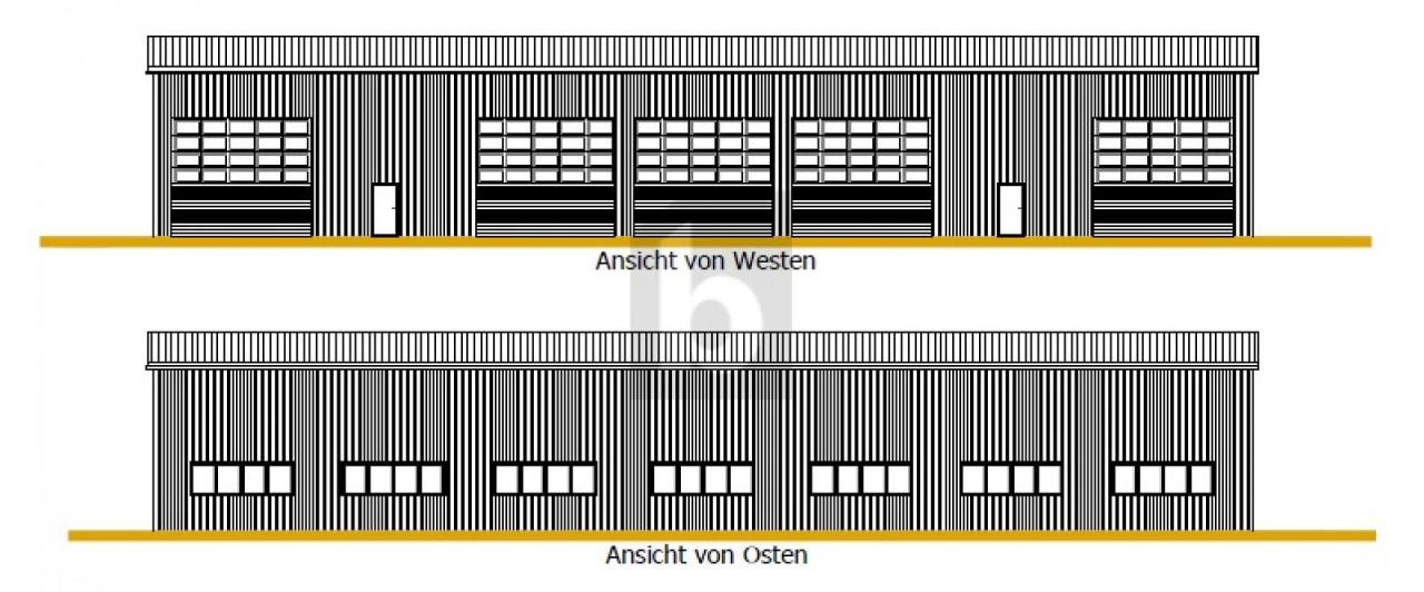 - Anschlüsse für Wasser, Abwasser, WC werden an 2 Stellen in der Halle auf Wunsch angebracht